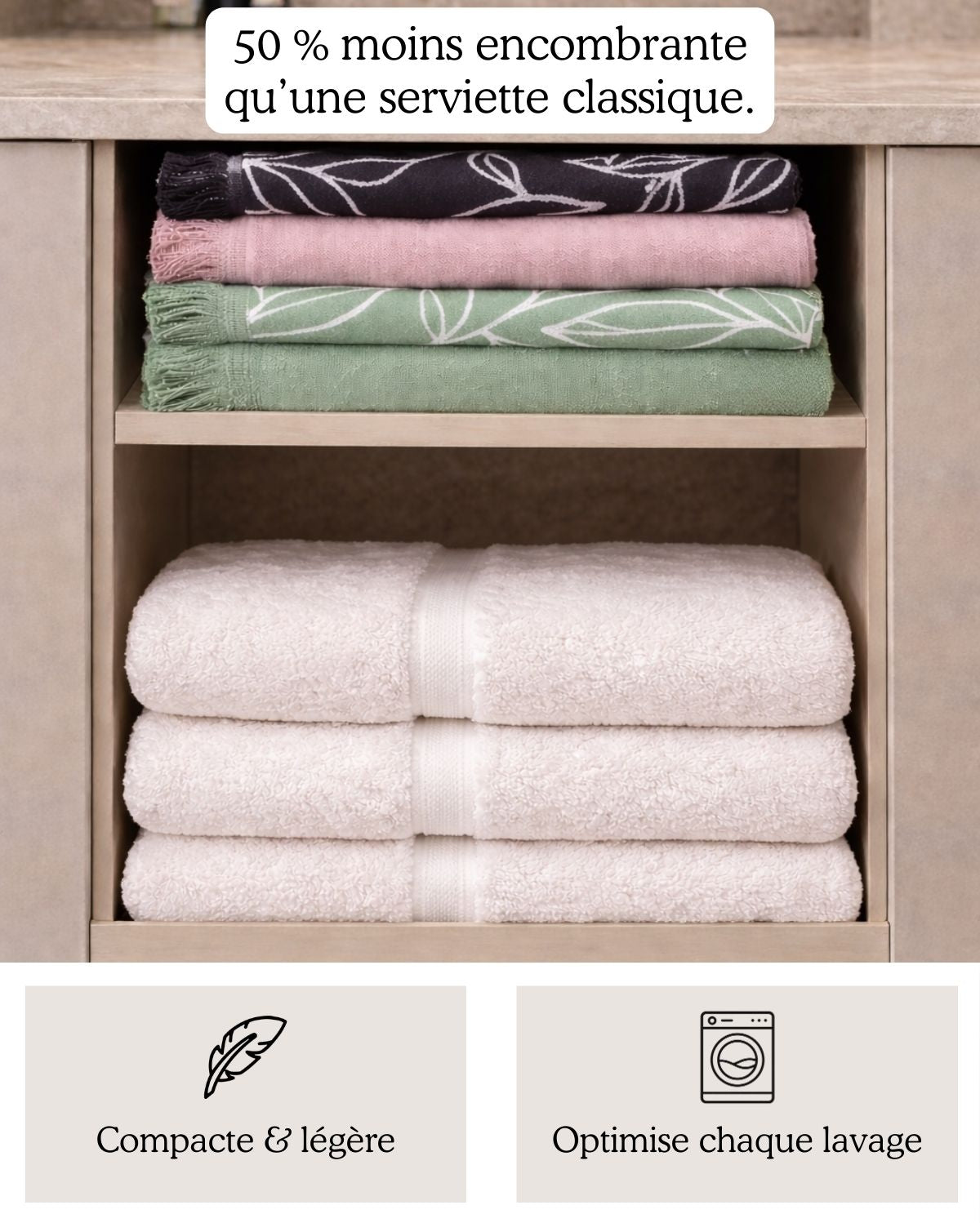 • Compact and lightweight — Takes up to 50% less space in your closet than traditional towels.